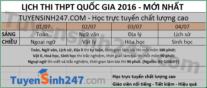 -> Chú ý hiện Bộ Giáo Dục chưa công bố giờ vào thi và giờ phát đề cũng như hết giờ thi cho 2016 - Tất cả thông tin hiện tại trên mạng là không chính xác